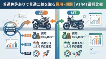 普通免許ありで普通二輪を取る費用・期間|AT/MT最短比較