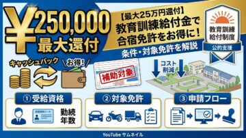 【最大25万円還付】教育訓練給付金で合宿免許をお得に!条件・対象免許を解説