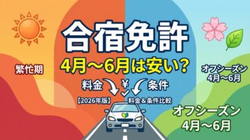 春休み中に動けなかった人にとって、4〜6月の合宿免許は本当に狙い目なのでしょうか。結論からいうと、春休みピーク後の4〜6月は料金が下がりやすい時期ですが、最安プランほど曜日・部屋・性別・別途費用などの条件を細かく確認する必要があります。 4〜6月がオフシーズンとして見られやすい理由 2026年に確認できた学校別の料金と注記の違い 「安いはずだったのに不便だった」を防ぐ比較ポイント こんな方におすす…