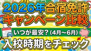 春休みを逃したあとに合宿免許を探し始めると、「4〜6月は安いらしいけれど、本当に今が狙い目なの?」と迷いやすいですよね。実際、2026年3月時点でも春〜初夏向けのキャンペーンは複数見つかりますが、割引額だけで決めると、思ったより安くならないことがあります。 4〜6月入校が安くなりやすい理由 2026年春〜初夏に確認できるキャンペーンの傾向 学割・早割・グル割、交通費、部屋タイプまで含めた見方 こん…
