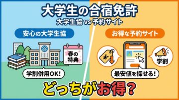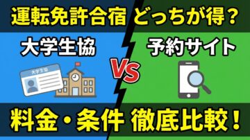 合宿免許は大学生協と予約サイトどっち?料金と条件を比較 大学生協なら相談しやすそう。でも予約サイトのほうが安く見える。合宿免許を検討し始めると、最初に迷いやすいのがこの申込窓口の違いです。 大学生協と予約サイトの違いを、料金だけでなく条件面まで整理できます 学割・価格保証・キャンセル条件の見方がわかります 自分に向いている申込窓口を判断しやすくなります こんな方におすすめの記事です 大学生協経由で…