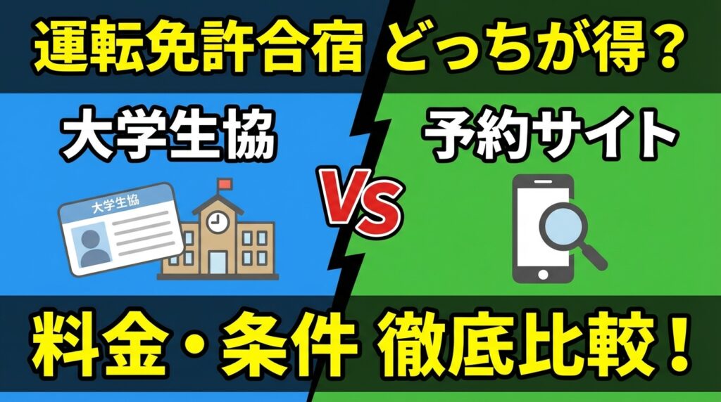本記事では、合宿免許の大学生協と予約サイトの違いを、学割・早割・価格保証・キャンセル条件・大学別特典の観点からわかりやすく整理します。(専門知識は不要です!)