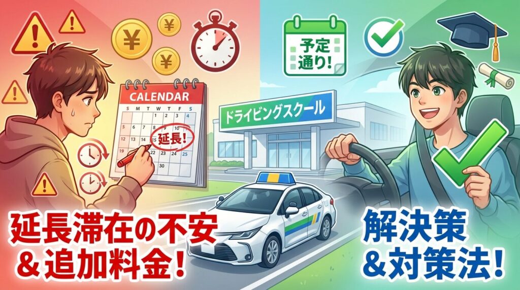 【不安解消】合宿免許で延泊になる原因は?追加費用・回避策を徹底解説