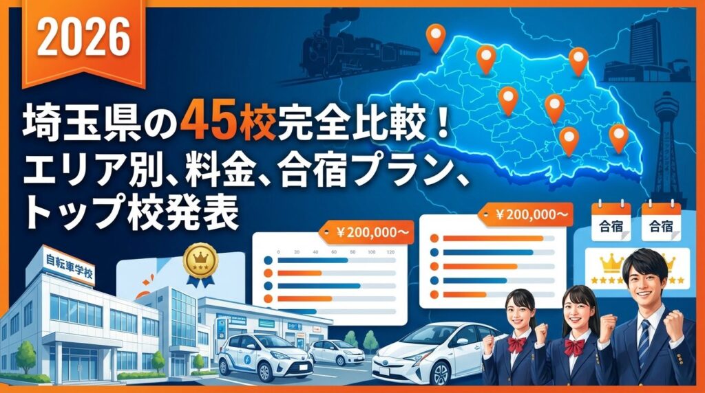 【2026年最新】埼玉県のおすすめ教習所45校|エリア別・料金・合宿免許を徹底比較