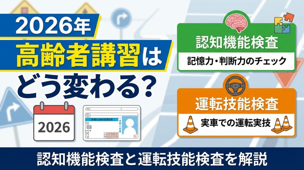 本記事では、高齢者の免許更新 2026・認知機能検査・運転技能検査の最新制度と準備方法をわかりやすく解説します。(専門知識は不要です!)
