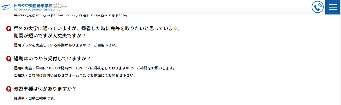 このように書かれていますので、愛知県の方で近くで合宿免許を受けたい場合にはお問い合わせしてみてください。