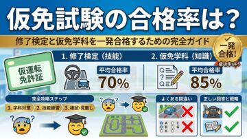 仮免試験の合格率は?修了検定と仮免学科を一発合格するための完全ガイド 第一段階の教習がすべて終わり、いよいよ「仮免試験」という大舞台を控えていますね。「本当に受かるかな?」「どれくらい難しいの?」と緊張や不安を感じている方も多いのではないでしょうか。 そんな皆さんのために、この記事では仮免試験(修了検定+仮免学科試験)の合格率や採点基準、一発不合格になる「危険行為」、そして確実に合格するための対策… -